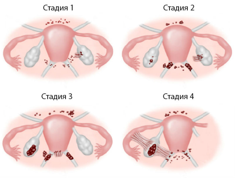 III ст. – процесс распространяется дальше, возникают спайки, небольшие кисты одного или обоих яичников, множество глубоких очагов поражения.